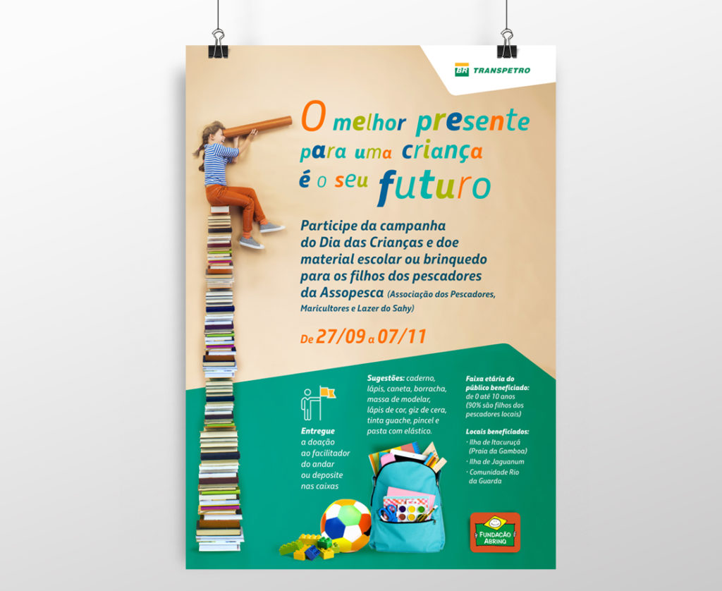 Projeto gráfico para a campanha de arrecadação de material escolar para crianças carentes.