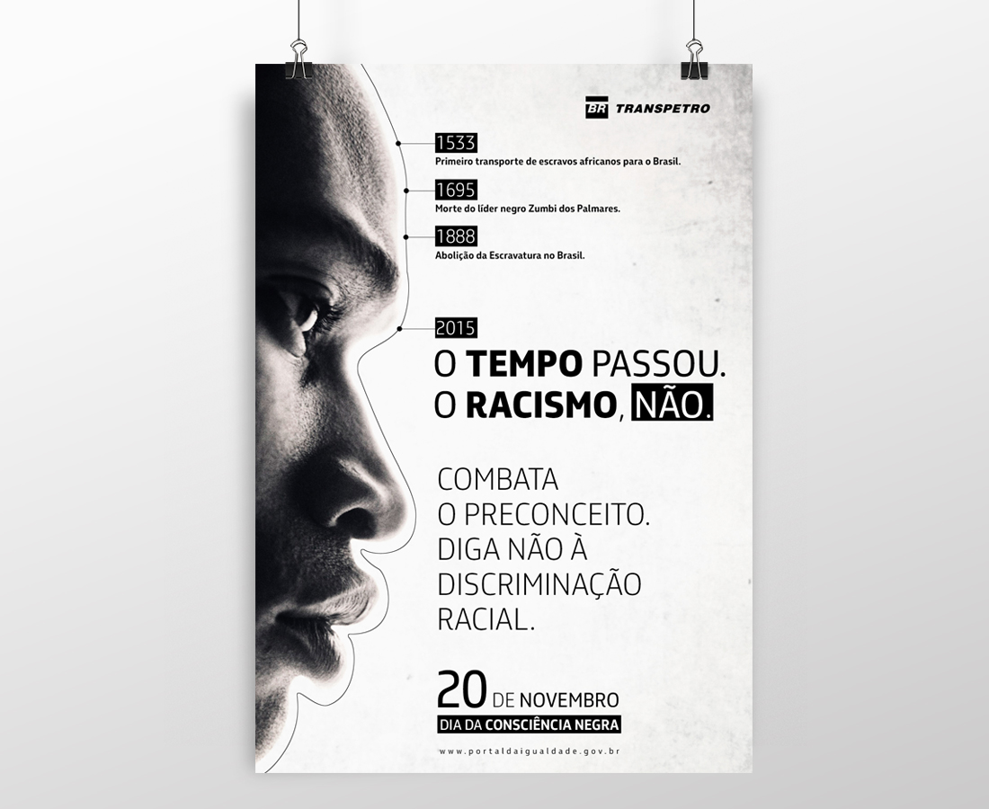 Projeto gráfico para cartaz para a campanha de combate ao racismo e à discriminação racial.